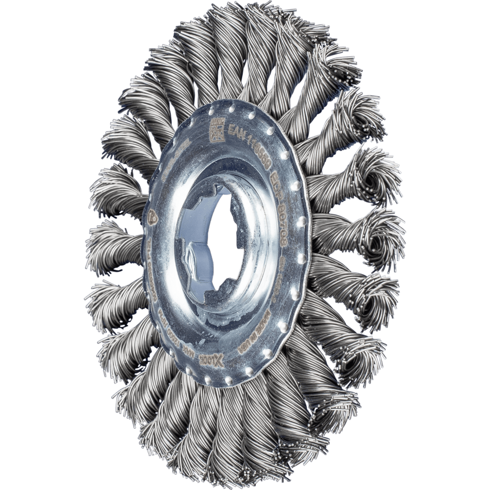 - Aggresívny brúsiaci efekt vďaka veľmi pevným drôteným uzlom.