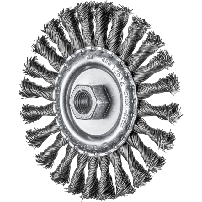 Aggresívny štetec. Vhodný na ťažké brúsenie v kovovýrobe, ako je odstraňovanie vodného kameňa, hrdze, deburrovanie, čistenie zvarových švov, odstraňovanie zvyškov lepidla a striekancov. Oceľové drôty sú najbežnejším materiálom vlákien. Štetce s oceľovým drôtom ako materiálom vlákien sú obzvlášť vhodné na prácu na povrchoch a deburrovanie. Špeciálny drôt PFERD TOOLS má vysokú pevnosť v ťahu a únosnosť ohybu. To zabezpečuje, že sa drôt opotrebováva optimálnym spôsobom, ako aj dlhú životnosť nástroja, aj pri extrémnych aplikáciách brúsenia. Oceľový drôt odoláva teplotám až do 300 °C.