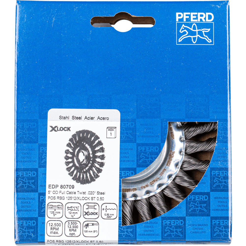 Aggresívny štetec. Vhodný na ťažké brúsenie v kovospracujúcom priemysle, ako je odstraňovanie vodného kameňa, hrdze, deburr, čistenie zvarových švov, odstraňovanie zvyškov lepidla a striekancov. Systém Bosch X-LOCK pre uhlové brúsky umožňuje rýchlu a jednoduchú výmenu náradia. Namiesto okrúhleho stredového otvoru má systém X-LOCK X-tvarovaný kontúr, ktorý umožňuje náradiu byť upevnené na uhlovej brúske presne. To znamená, že rôzne druhy náradia môžu byť spoľahlivo upnuté v veľmi krátkom čase. Tento jedinečný systém spĺňa najvyššie štandardy kvality a bezpečnosti a dokáže odolať drsným a náročným podmienkam aplikácie. X-LOCK od Bosch je prvý rýchlo-vymeniteľný systém pre uhlové brúsky na svete: Umiestnite náradie do držiaka X-LOCK, kliknite na miesto – a ste pripravení! Nikdy nebolo tak jednoduché meniť príslušenstvo na uhlových brúskach. X-LOCK vytvára nový štandard, ktorý uľahčuje život profesionálom a zvyšuje ich produktivitu. Bosch Power Tools sa spolieha na silných partnerov ako PFERD TOOLS. PFERD TOOLS vyvinul princíp pre spojenie X-LOCK vyrazeného dielu s lepeným abrazívom, lamelovými kotúčmi a štetcami a vytvoril podmienky na ich priemyselnú výrobu. Oceľové drôty sú najbežnejším materiálom vlákien. Štetce s oceľovým drôtom ako materiálom vlákien sú obzvlášť vhodné na prácu na povrchoch a deburr. Špeciálny drôt PFERD TOOLS má vysokú pevnosť v ťahu a únosnosť ohybu. To zabezpečuje, že drôt sa opotrebováva optimálnym spôsobom, ako aj dlhú životnosť náradia, aj v extrémnych brúsiacich aplikáciách. Oceľový drôt odoláva teplotám až do 300 °C.
