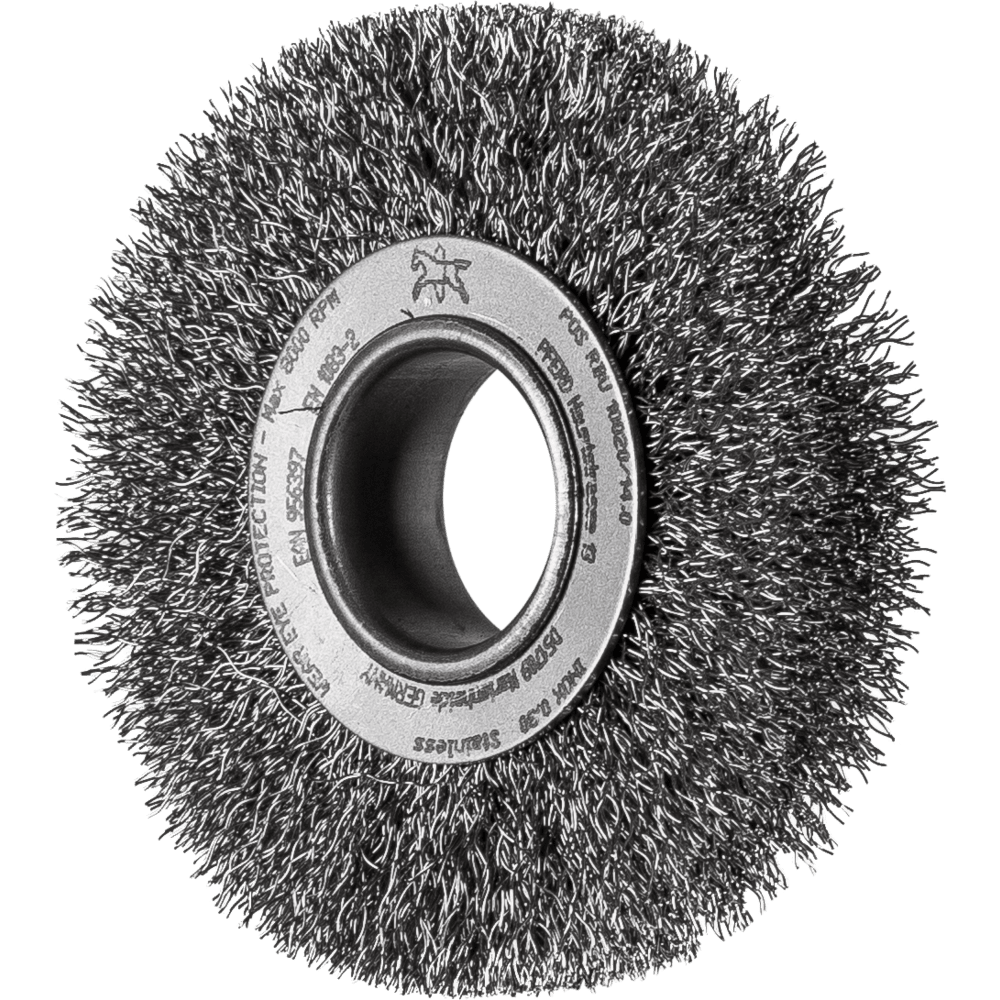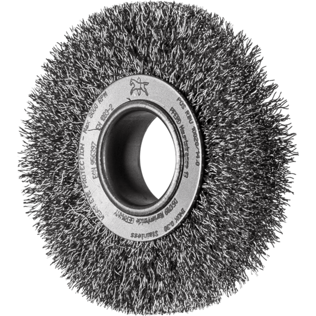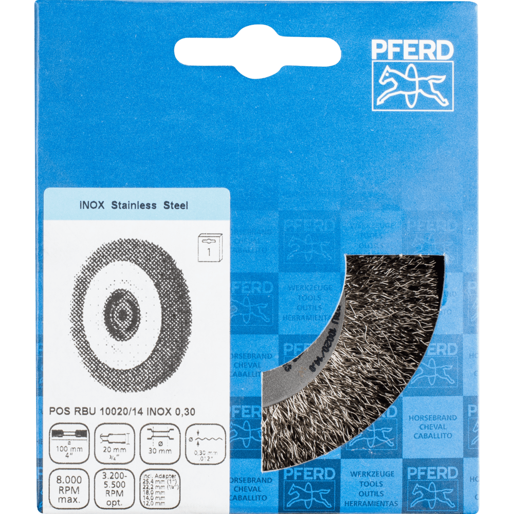 Vynikajúce pre stredne náročné ručné alebo automatizované čistenie pracovných kusov s veľkými povrchmi. Aby sa splnili špecifické požiadavky na prácu s nehrdzavejúcou oceľou (INOX), PFERD TOOLS používa drôtovú kvalitu 1.4310 (V2A) pre všetky INOX kefy. Praktické skúsenosti z priemyslu ukázali, že to ponúka veľmi dobrú odolnosť voči korózii s optimálnou životnosťou nástroja. Všetky kefy PFERD TOOLS s INOX vláknami sú farebne kódované na modro a sú vhodné na použitie na všetkých nehrdzavejúcich oceľach (INOX), ako je V4A. Drôtová kvalita 1.4310 má tendenciu stať sa feromagnetickou pri studenom spracovaní; t.j. môže byť priťahovaná magnetmi. Dôvodom je zmena mikroštruktúry spôsobená deformáciou (napr. počas procesu ťahania drôtu). To nemá žiadny vplyv na kvalitu a odolnosť voči korózii INOX vlákna. Vlákno je stále odolné voči korózii. Drôt z nehrdzavejúcej ocele (INOX) odoláva teplotám až do 450 °C. Vyvinuté pre všeobecné použitie v dielni.