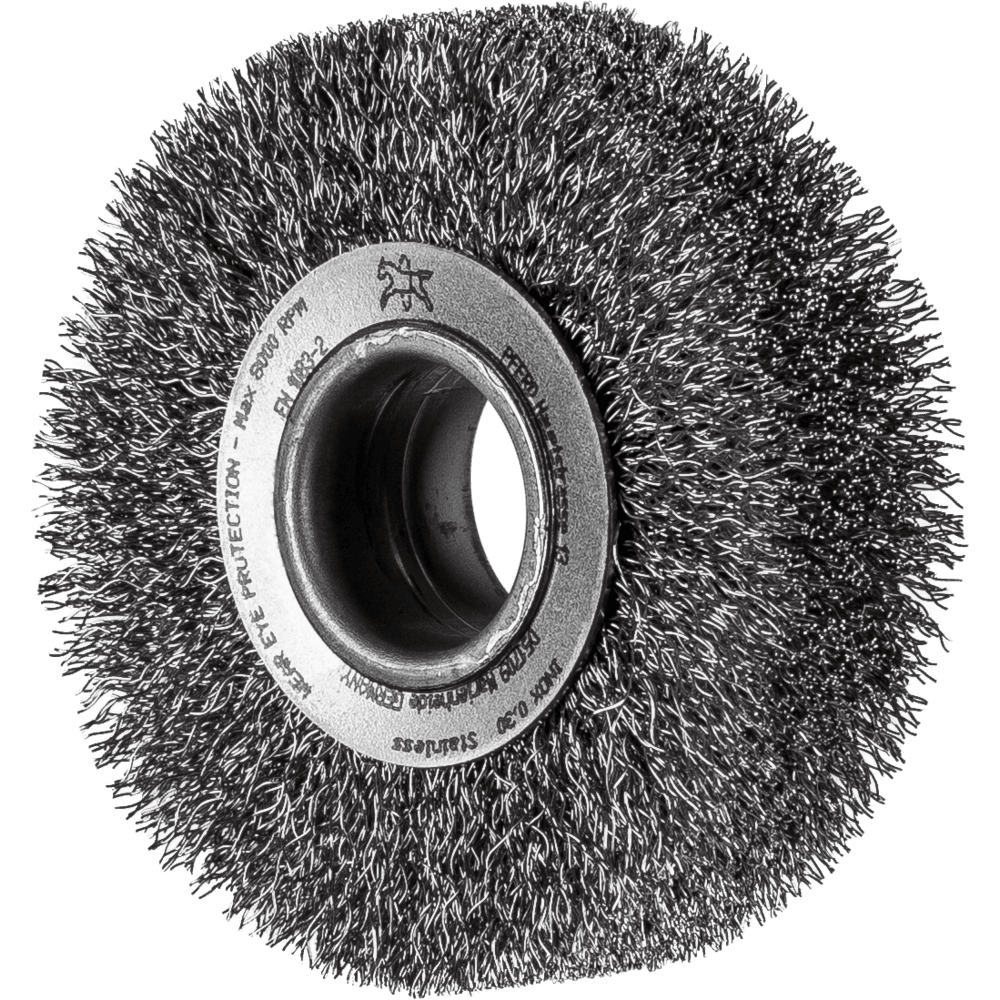 Vynikajúce pre stredne náročné ručné alebo automatizované čistenie pracovných kusov s veľkými plochami. Aby sa splnili osobitné požiadavky na prácu s nehrdzavejúcou oceľou (INOX), PFERD TOOLS používa drôtovú kvalitu 1.4310 (V2A) pre všetky INOX kefy. Praktické skúsenosti z priemyslu ukázali, že to ponúka veľmi dobrú odolnosť voči korózii s optimálnou životnosťou nástroja. Všetky kefy PFERD TOOLS s INOX vláknami sú farebne označené modrou farbou a sú vhodné na použitie na všetkých nehrdzavejúcich oceľach (INOX), ako je V4A. Drôtová kvalita 1.4310 má tendenciu stať sa feromagnetickou pri studenom spracovaní; t.j. môže byť priťahovaná magnetmi. Dôvodom je zmena mikroštruktúry spôsobená deformáciou (napr. počas procesu ťahania drôtu). To nemá žiadny vplyv na kvalitu a odolnosť voči korózii INOX vlákna. Vlákno je stále odolné voči korózii. Drôt z nehrdzavejúcej ocele (INOX) odoláva teplotám až do 450 °C. Vyvinuté pre všeobecné použitie v dielni.