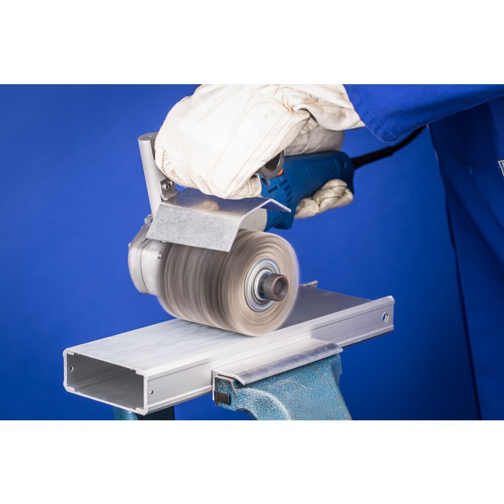 Vynikajúce na prácu so štruktúrovaním povrchov na obrobkoch s veľkými plochami. Aby sa splnili osobitné požiadavky na prácu s nehrdzavejúcou oceľou (INOX), PFERD TOOLS používa drôtovú kvalitu 1.4310 (V2A) pre všetky INOX kefy. Praktické skúsenosti z priemyslu ukázali, že to ponúka veľmi dobrú odolnosť voči korózii s optimálnou životnosťou nástroja. Všetky kefy PFERD TOOLS s INOX vláknami sú farebne označené modrou farbou a sú vhodné na použitie na všetkých nehrdzavejúcich oceľach (INOX), ako je V4A. Drôtová kvalita 1.4310 má tendenciu stať sa feromagnetickou pri studenej práci; t.j. môže byť priťahovaná magnetmi. Dôvodom je zmena v mikroštruktúre spôsobená deformáciou (napr. počas procesu ťahania drôtu). To nemá žiadny vplyv na kvalitu a odolnosť voči korózii INOX vlákna. Vlákno je stále odolné voči korózii. Drôt z nehrdzavejúcej ocele (INOX) odoláva teplotám až do 450 °C.