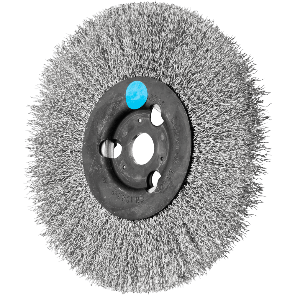 Aby sa splnili špecifické požiadavky na prácu s nerezovou oceľou (INOX), PFERD TOOLS používa drôtovú kvalitu 1.4310 (V2A) pre všetky INOX kefy. Praktické skúsenosti z priemyslu ukázali, že to ponúka veľmi dobrú odolnosť voči korózii s optimálnou životnosťou nástroja. Všetky kefy PFERD TOOLS s INOX vláknami sú farebne označené modrou farbou a sú vhodné na použitie na všetkých nerezových oceľach (INOX), ako je V4A. Drôtová kvalita 1.4310 má tendenciu stať sa feromagnetickou v prípade studenej práce; t.j. môže byť priťahovaná magnetmi. Dôvodom je zmena mikroštruktúry spôsobená deformáciou (napr. počas procesu ťahania drôtu). To nemá žiadny vplyv na kvalitu a odolnosť voči korózii INOX vlákna. Vlákno je stále odolné voči korózii. Nerezový drôt (INOX) odoláva teplotám až do 450 °C. Vynikajúce pre stredne náročné ručné alebo automatizované kefovanie obrobkov s veľkými plochami.