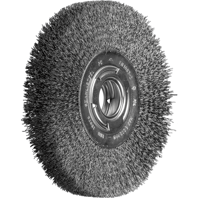 Vynikajúce pre stredne ťažké ručné alebo automatizované čistenie pracovných kusov s veľkými plochami. Oceľové drôty sú najbežnejším materiálom vlákien. Kefy s oceľovými drôtmi ako materiálom vlákien sú obzvlášť vhodné na prácu na povrchoch a odhrotovanie. Špeciálny drôt PFERD TOOLS má vysokú pevnosť v ťahu a únosnosť pri ohybe. To zabezpečuje optimálne opotrebovanie drôtu, ako aj dlhú životnosť nástroja, aj pri extrémnych aplikáciách čistenia. Oceľové drôty odolávajú teplotám až do 300 °C. Vyvinuté špeciálne pre priemyselné použitie.