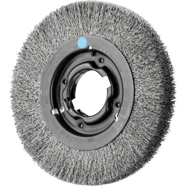 Vynikajúce pre stredne náročné ručné alebo automatizované čistenie pracovných kusov s veľkými plochami. Aby sa splnili osobitné požiadavky na prácu s nehrdzavejúcou oceľou (INOX), PFERD TOOLS používa drôtovú kvalitu 1.4310 (V2A) pre všetky INOX kefy. Praktické skúsenosti z priemyslu ukázali, že to ponúka veľmi dobrú odolnosť voči korózii s optimálnou životnosťou nástroja. Všetky kefy PFERD TOOLS s INOX vláknami sú farebne označené modrou farbou a sú vhodné na použitie na všetkých nehrdzavejúcich oceľach (INOX), ako je V4A. Drôtová kvalita 1.4310 má tendenciu stať sa feromagnetickou pri studenom spracovaní; t.j. môže byť priťahovaná magnetmi. Dôvodom je zmena mikroštruktúry spôsobená deformáciou (napr. počas procesu ťahania drôtu). To nemá žiadny vplyv na kvalitu a odolnosť voči korózii INOX vlákna. Vlákno je stále odolné voči korózii. Drôt z nehrdzavejúcej ocele (INOX) odoláva teplotám až do 450 °C. Vyvinuté špeciálne pre priemyselné použitie.