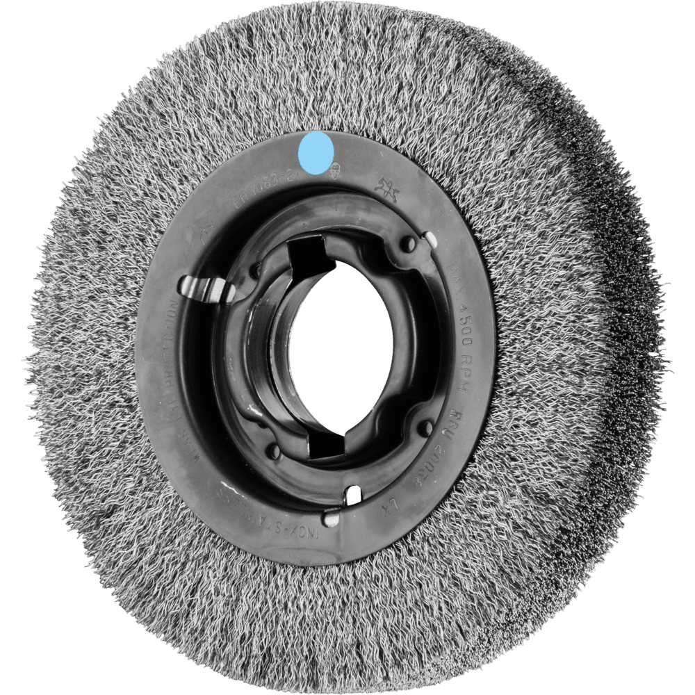 Vynikajúce pre stredne náročné ručné alebo automatizované čistenie pracovných kusov s veľkými plochami. Aby sa splnili osobitné požiadavky na prácu s nehrdzavejúcou oceľou (INOX), PFERD TOOLS používa drôtovú kvalitu 1.4310 (V2A) pre všetky INOX kefy. Praktické skúsenosti z priemyslu ukázali, že to ponúka veľmi dobrú odolnosť voči korózii s optimálnou životnosťou nástroja. Všetky kefy PFERD TOOLS s INOX vláknami sú farebne kódované modrou farbou a sú vhodné na použitie na všetkých nehrdzavejúcich oceľach (INOX), ako je V4A. Drôtová kvalita 1.4310 má tendenciu stať sa feromagnetickou v prípade studenej práce; t.j. môže byť priťahovaná magnetmi. Dôvodom je zmena mikroštruktúry spôsobená deformáciou (napr. počas procesu ťahania drôtu). To nemá žiadny vplyv na kvalitu a odolnosť voči korózii INOX vlákna. Vlákno je stále odolné voči korózii. Drôt z nehrdzavejúcej ocele (INOX) odoláva teplotám až do 450 °C. Vyvinuté špeciálne pre priemyselné použitie.