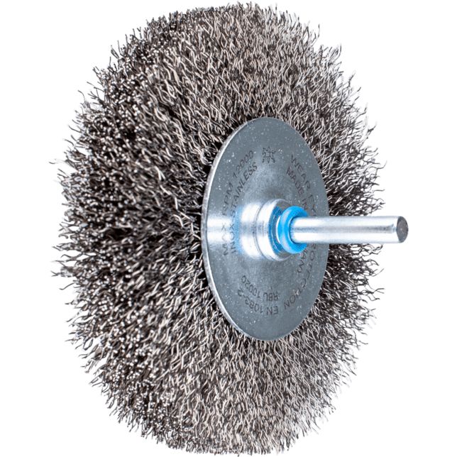 Všeobecne vhodné na čistenie, odhrdzovanie, vyhladzovanie, čistenie zvarových spojov, ľahké odhrotovanie a odstraňovanie korózie a farby. Aby sa splnili osobitné požiadavky na prácu s nehrdzavejúcou oceľou (INOX), PFERD TOOLS používa drôtovú kvalitu 1.4310 (V2A) pre všetky INOX kefy. Praktické skúsenosti z priemyslu ukázali, že to ponúka veľmi dobrú odolnosť voči korózii s optimálnou životnosťou nástroja. Všetky kefy PFERD TOOLS s INOX vláknami sú farebne označené modrou farbou a sú vhodné na použitie na všetkých nehrdzavejúcich oceľach (INOX), ako je V4A. Drôtová kvalita 1.4310 má tendenciu stať sa ferromagnetickou pri studenom spracovaní; t.j. môže byť priťahovaná magnetmi. Dôvodom je zmena mikroštruktúry spôsobená deformáciou (napr. počas procesu ťahania drôtu). To nemá žiadny vplyv na kvalitu a odolnosť voči korózii INOX vlákna. Vlákno je stále odolné voči korózii. Drôt z nehrdzavejúcej ocele (INOX) odoláva teplotám až do 450 °C.