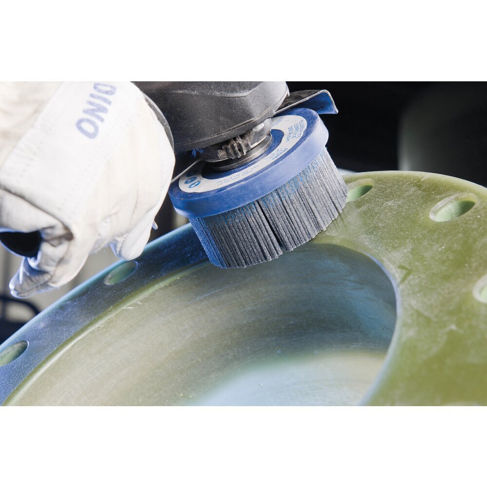- Tento štetec je vhodný na použitie na rýchlostne nastaviteľných uhlových brúskach.