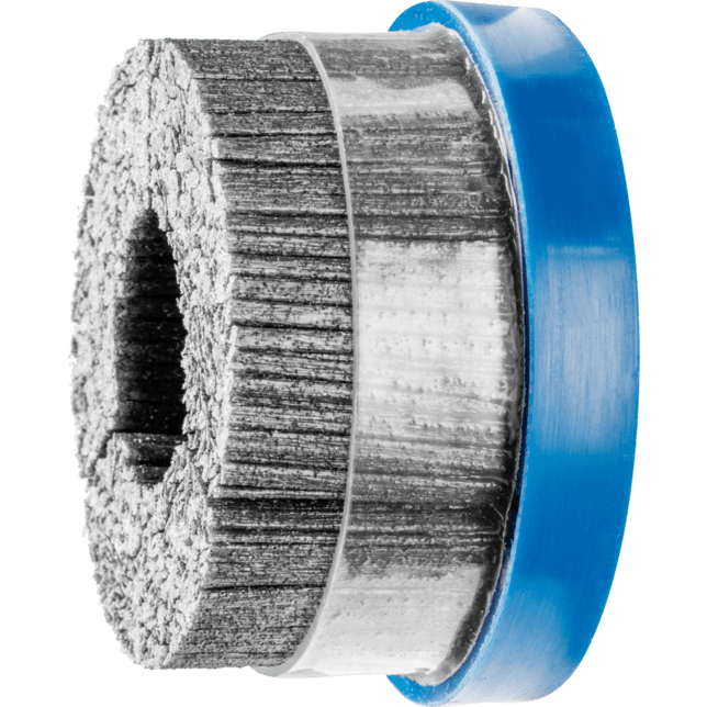 Obzvlášť agresívny štetec s uzdou. Obzvlášť vhodný na odhrotovanie a prácu na povrchoch na stacionárnych strojoch. Kompozitné štetce od PFERD TOOLS boli špeciálne vyvinuté pre priemyselné, automatizované použitie. Sú vhodné pre rôzne aplikácie a ich variabilné možnosti upínania znamenajú, že môžu byť použité na mnohých rôznych pohonných systémoch. To ponúka výhodu, že obrobok môže byť vyrobený a dokončený na rovnakom stroji. V dôsledku toho sa znižuje práca náročná na pracovnú silu a dosahujú sa reprodukovateľné výsledky s krátkymi cyklami. Pre efektívne použitie je potrebné koordinovať množstvo aplikačných parametrov, ako je čas spracovania a posuv, a vybrať vhodný štetec. Štetce so silikónovým karbidom (SiC) sú obzvlášť vhodné na odhrotovanie a zlepšovanie povrchov. Obdĺžnikový filament [REC] je vhodný pre aplikácie, ktoré kladú osobitné požiadavky na agresivitu štetca. Väčší prierez filamentov znamená, že sú tuhšie ako okrúhle filamente a poskytujú väčšiu kontaktnú plochu s obrobkom. Plastový filament odoláva teplotám až do 220 °C.