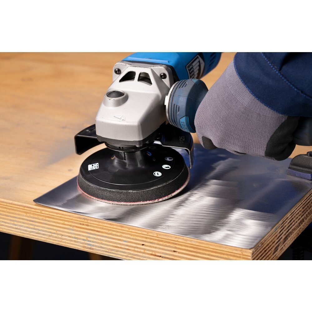Držiak na disky s hákom a slučkou umožňuje používanie diskov s hákom a slučkou s komerčne dostupnými uhlovými brúskami s nastaviteľnou rýchlosťou alebo pomaly bežiacimi brúskami s M14 montážou.