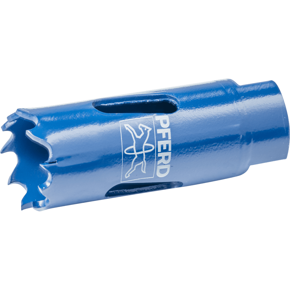 - Korunková píla je pohodlne centrovaná a vedená cez vymeniteľnú HSS pilotnú vrtáku.
