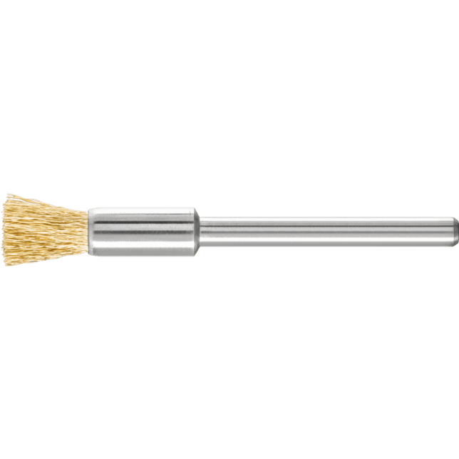 Vhodné na jemné čistenie, ako je odhrotovanie, čistenie a leštenie. PFERD TOOLS ponúka široký sortiment miniatúrnych štetcov pre presnú prácu. Tieto môžu byť použité na flexibilných hriadeľových pohonoch, mikro motoroch alebo elektrických brúskach. Štetce s mosadznými drôtmi sú vhodné na špecifické aplikácie, ako je povrchová úprava na obrobkoch vyrobených z medi a mosadze. V porovnaní s oceľovými drôtmi je mosadzný drôt mäkší a flexibilnejší. Pre všetky štetce s mosadzným drôtom PFERD TOOLS používa kvalitu drôtu CuZn37. Mosadzný drôt odoláva teplotám až do 180 °C.