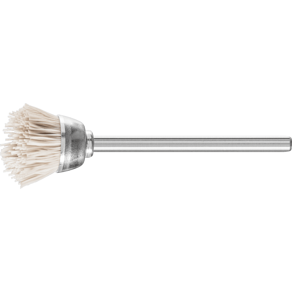 Vhodné na jemné brúsenie, ako je odhrotovanie, čistenie a leštenie. Obzvlášť vhodné na brúsenie na malých plochách vďaka použitiu s celou plochou kefy aplikovanou na obrobok. PFERD TOOLS ponúka široký sortiment mini kefiek pre presnú prácu. Tieto môžu byť použité na flexibilných hriadeľových pohonoch, mikro motoroch alebo elektrických brúskach. Kefy s oxidom hliníka (AO) sú menej ostré a agresívne v porovnaní so SiC. Sú primárne vhodné na leštenie a vyhladzovanie povrchov na mäkkých kovoch. Plastové vlákno odoláva teplotám až do 220 °C.