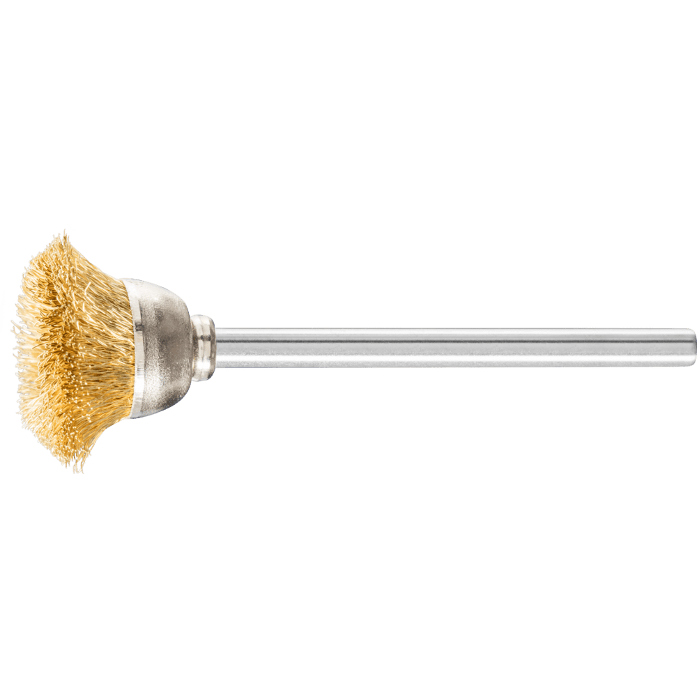 Vhodné na jemné brúsenie, ako je odhrotovanie, čistenie a leštenie. Obzvlášť vhodné na brúsenie na malých plochách vďaka použitiu čelom nadol, pričom celá čelová plocha kefy je aplikovaná na obrobok. PFERD TOOLS ponúka široký sortiment miniatúrnych kief pre presnú prácu. Tieto môžu byť použité na flexibilných hriadeľových pohonoch, mikromotoroch alebo elektrických brúskach. Kefy s mosadzným drôtom sú vhodné na špecifické aplikácie, ako je povrchová úprava obrobkov vyrobených z medi a mosadze. V porovnaní s oceľovým drôtom je mosadzný drôt mäkší a flexibilnejší. Pre všetky kefy s mosadzným drôtom PFERD TOOLS používa kvalitu drôtu CuZn37. Mosadzný drôt odoláva teplotám až do 180 °C.