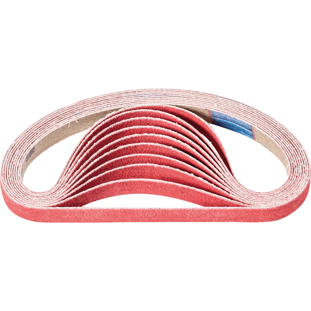 Na agresívne brúsenie s maximálnou rýchlosťou odstraňovania materiálu na tvrdých materiáloch, ktoré zle vedú teplo. Konzistentne vysoký výkon vďaka samoostriacim keramickým oxidačným zrnám. Aktívne brúsiace prísady v povlaku podstatne zlepšujú rýchlosť odstraňovania materiálu, zabraňujú upchávaniu a vedú k chladnejšiemu brúseniu. Krátke pásy sú kompatibilné s bežne dostupnými pásovými brúskami. V norme ISO 2976 sú uvedené pod označením "brúsne pásy".