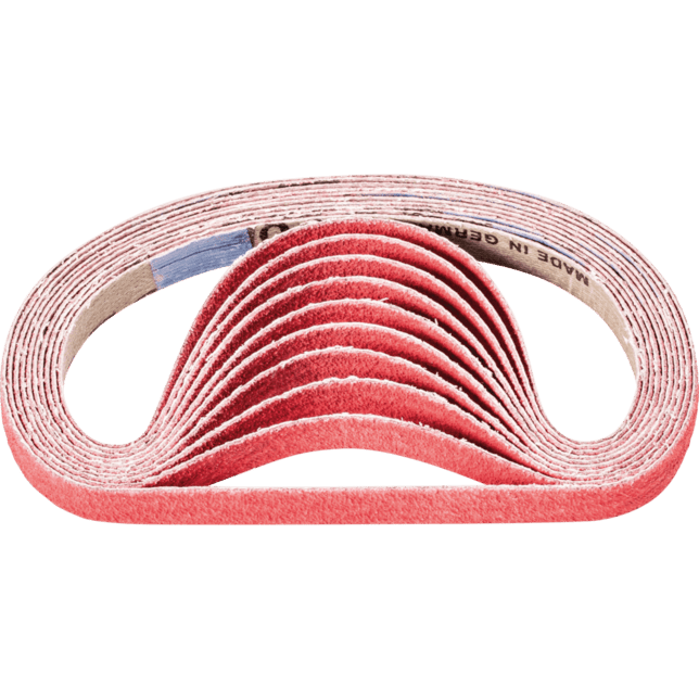 Na agresívne brúsenie s maximálnou rýchlosťou odstraňovania materiálu na tvrdých materiáloch, ktoré zle vedú teplo. Konzistentne vysoký výkon vďaka samoostriacim keramickým oxidačným zrnám. Aktívne brúsiace prísady v povlaku podstatne zlepšujú rýchlosť odstraňovania materiálu, zabraňujú upchávaniu a zabezpečujú chladnejšie brúsenie. Krátke pásy sú kompatibilné s bežne dostupnými pásovými brúskami. V norme ISO 2976 sú uvedené pod označením "brúsiace pásy".
