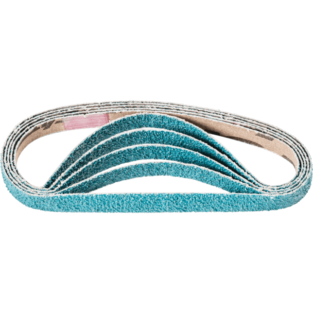 Na hrubé brúsenie s vysokou rýchlosťou odstraňovania materiálu a dlhou životnosťou náradia. Krátke pásy sú kompatibilné s bežne dostupnými pásovými brúskami. V norme ISO 2976 sú uvedené pod označením "brúsne pásy".