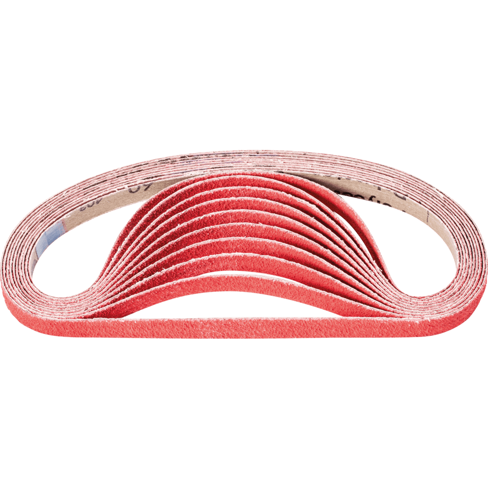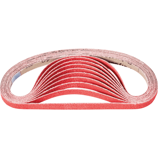 Na agresívne brúsenie s maximálnou rýchlosťou odstraňovania materiálu na tvrdých materiáloch, ktoré zle vedú teplo. Konzistentne vysoký výkon vďaka samoostriacim keramickým oxidu zrnám. Aktívne brúsiace prísady v povlaku podstatne zlepšujú rýchlosť odstraňovania materiálu, zabraňujú upchávaniu a vedú k chladnejšiemu brúseniu. Krátke pásy sú kompatibilné s bežne dostupnými pásovými brúskami. V norme ISO 2976 sú uvedené pod označením "brúsiace pásy".