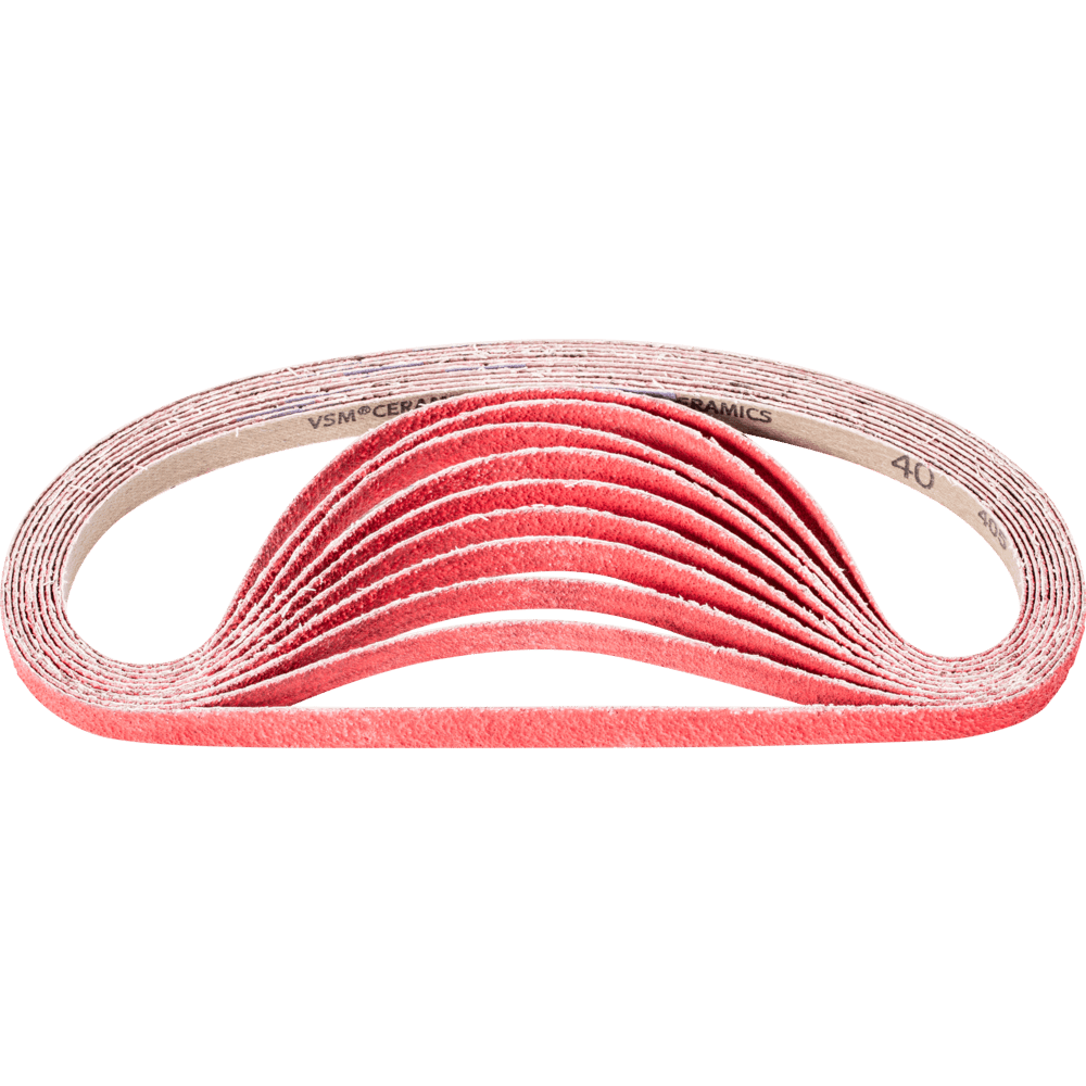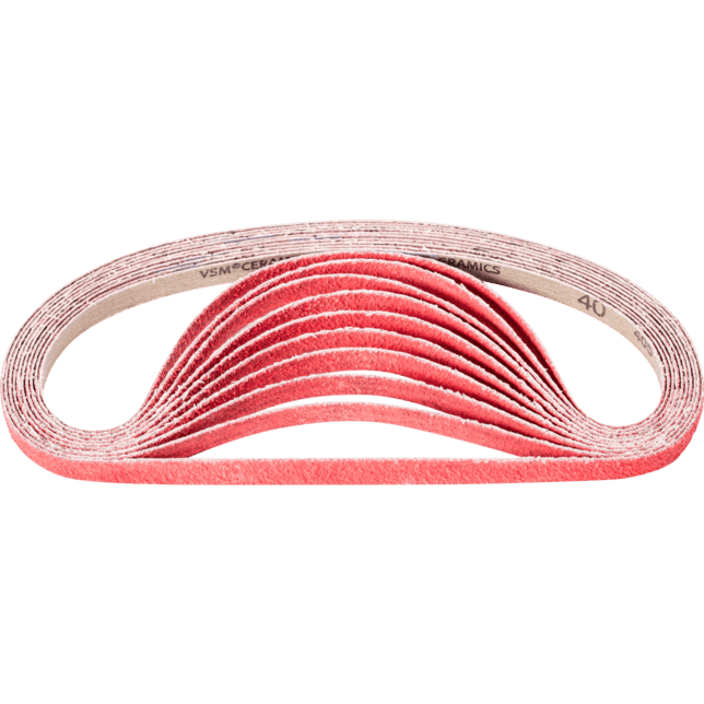 Na agresívne brúsenie s maximálnou rýchlosťou odstraňovania materiálu na tvrdých materiáloch, ktoré zle vedú teplo. Konzistentne vysoký výkon vďaka samoostriacim keramickým oxidu zrnám. Aktívne brúsiace prísady v povlaku podstatne zlepšujú rýchlosť odstraňovania materiálu, zabraňujú upchávaniu a vedú k chladnejšiemu brúseniu. Krátke pásy sú kompatibilné s bežne dostupnými pásovými brúskami. V ISO 2976 sú uvedené pod označením "brúsiace pásy".