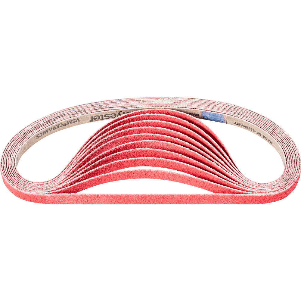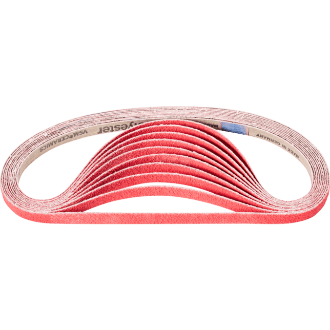 Na agresívne brúsenie s maximálnou rýchlosťou odstraňovania materiálu na tvrdých materiáloch, ktoré zle vedú teplo. Konzistentne vysoký výkon vďaka samoostriacim keramickým oxidačným zrnám. Aktívne brúsiace prísady v povlaku podstatne zlepšujú rýchlosť odstraňovania materiálu, zabraňujú upchávaniu a zabezpečujú chladnejšie brúsenie. Krátke pásy sú kompatibilné s bežne dostupnými pásovými brúskami. V norme ISO 2976 sú uvedené pod označením "brúsiace pásy".