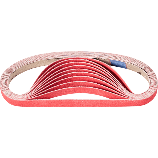 Na agresívne brúsenie s maximálnou rýchlosťou odstraňovania materiálu na tvrdých materiáloch, ktoré zle vedú teplo. Konzistentne vysoký výkon vďaka samoostriacim keramickým oxidačným zrnám. Aktívne brúsiace prísady v povlaku podstatne zlepšujú rýchlosť odstraňovania materiálu, zabraňujú upchávaniu a zabezpečujú chladnejšie brúsenie. Krátke pásy sú kompatibilné s bežne dostupnými pásovými brúskami. V norme ISO 2976 sú uvedené pod označením "brúsiace pásy".