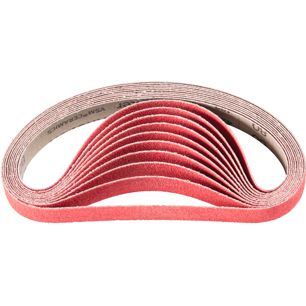 Na agresívne brúsenie s maximálnou rýchlosťou odstraňovania materiálu na tvrdých materiáloch, ktoré zle vedú teplo. Konzistentne vysoký výkon vďaka samoostriacim keramickým oxidu zrnám. Aktívne brúsiace prísady v povlaku podstatne zlepšujú rýchlosť odstraňovania materiálu, zabraňujú upchávaniu a zabezpečujú chladnejšie brúsenie. Krátke pásy sú kompatibilné s bežne dostupnými pásovými brúskami. V ISO 2976 sú uvedené pod označením "brúsiace pásy".
