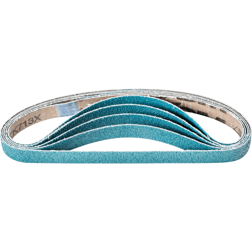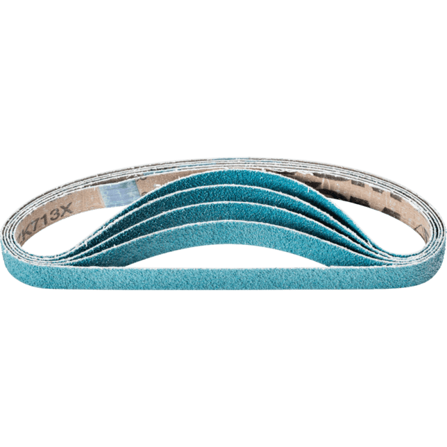 Na hrubé brúsenie s vysokou rýchlosťou odstraňovania materiálu a dlhou životnosťou náradia. Krátke pásy sú kompatibilné s bežne dostupnými pásovými brúskami. V norme ISO 2976 sú uvedené pod označením "brúsne pásy".