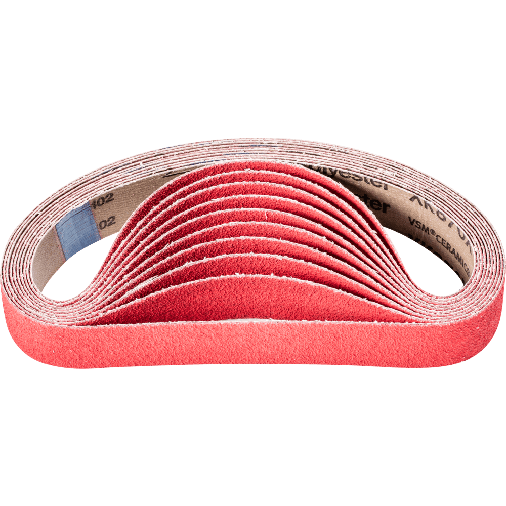 Na agresívne brúsenie s maximálnou rýchlosťou odstraňovania materiálu na tvrdých materiáloch, ktoré zle vedú teplo. Konzistentne vysoký výkon vďaka samoostriacim keramickým oxidu zrnám. Aktívne brúsiace prísady v povlaku podstatne zlepšujú rýchlosť odstraňovania materiálu, zabraňujú upchávaniu a vedú k chladnejšiemu brúseniu. Krátke pásy sú kompatibilné s bežne dostupnými pásovými brúskami. V norme ISO 2976 sú uvedené pod označením "brúsiace pásy".