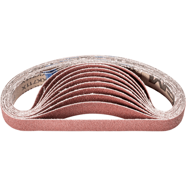 Pre všeobecné aplikácie od hrubého po jemné brúsenie. Krátke pásy sú kompatibilné s bežne dostupnými pásovými brúskami. V norme ISO 2976 sú uvedené pod označením "brúsiace pásy".