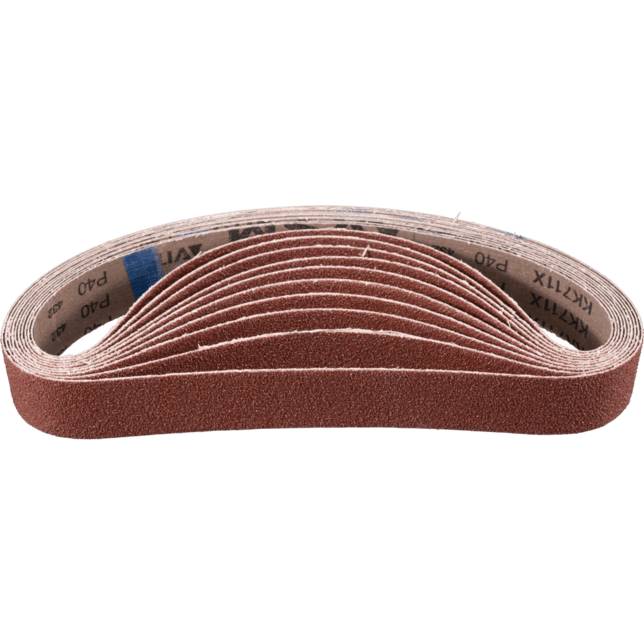 Pre všeobecné aplikácie od hrubého po jemné brúsenie. Krátke pásy sú kompatibilné s bežne dostupnými pásovými brúskami. V norme ISO 2976 sú uvedené pod označením "brúsiace pásy".