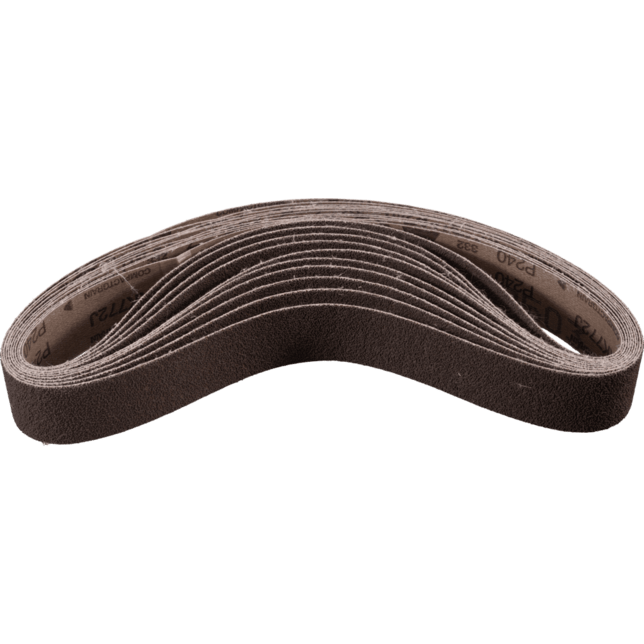 Výnimočne vhodné na jemné a veľmi jemné brúsenie a na postupné prípravy na leštenie. Samoostriaci kompaktný zrnkový materiál zabezpečuje veľmi dlhú životnosť nástroja a dosahuje konzistentnú kvalitu povrchu počas celej životnosti nástroja. Krátke pásy sú kompatibilné s bežne dostupnými pásovými brúskami. V norme ISO 2976 sú uvedené pod označením "brúsne pásy".