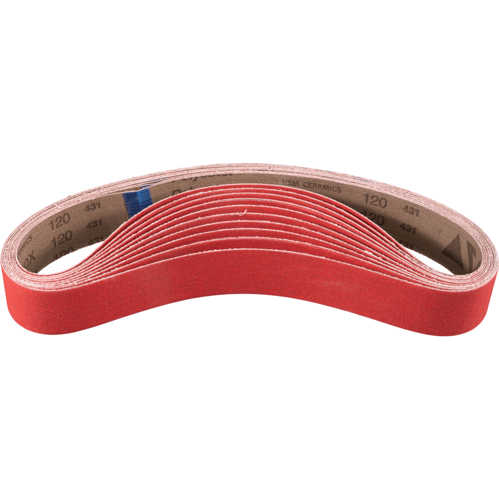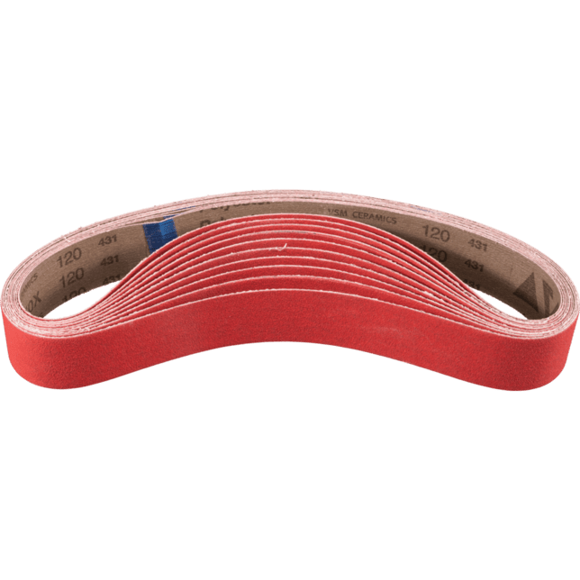 Na agresívne brúsenie s maximálnou rýchlosťou odstraňovania materiálu na tvrdých materiáloch, ktoré zle vedú teplo. Konzistentne vysoký výkon vďaka samoostriacim keramickým oxidačným zrnám. Aktívne brúsiace prísady v povlaku podstatne zlepšujú rýchlosť odstraňovania materiálu, zabraňujú upchávaniu a vedú k chladnejšiemu brúseniu. Krátke pásy sú kompatibilné s bežne dostupnými pásovými brúskami. V ISO 2976 sú uvedené pod označením "brúsiace pásy".