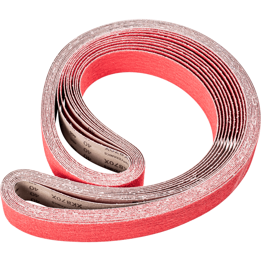 Na agresívne brúsenie s maximálnou rýchlosťou odstraňovania materiálu na tvrdých materiáloch, ktoré zle vedú teplo. Konzistentne vysoký výkon vďaka samoostriacim keramickým oxidačným zrnám. Aktívne brúsiace prísady v povlaku podstatne zlepšujú rýchlosť odstraňovania materiálu, zabraňujú upchávaniu a vedú k chladnejšiemu brúseniu. Dlhé pásy sú kompatibilné s bežne dostupnými pásovými brúskami. V norme ISO 2976 sú uvedené pod označením "brúsiace pásy".