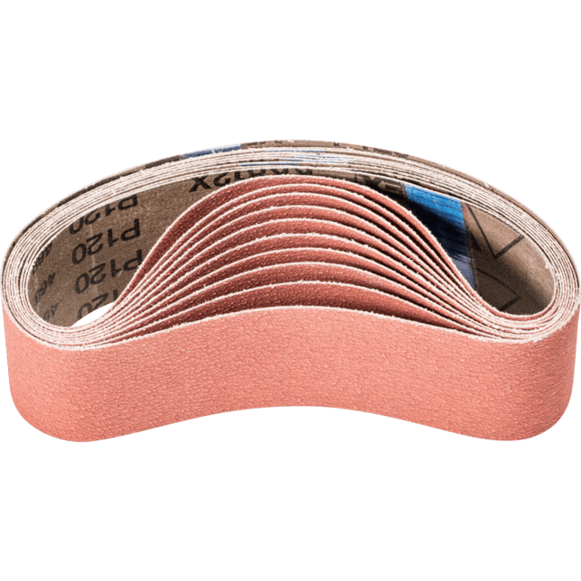 Na všeobecnú brúsenie od jemného po veľmi jemné brúsenie na materiáloch, ktoré zle vedú teplo, napr. nerezová oceľ (INOX). Aktívne brúsiace prísady v povlaku podstatne zlepšujú rýchlosť odstraňovania materiálu, zabraňujú upchávaniu a vedú k chladnejšiemu brúseniu. Krátke pásy sú kompatibilné s bežne dostupnými pásovými brúskami. V norme ISO 2976 sú uvedené pod označením "brúsiace pásy".