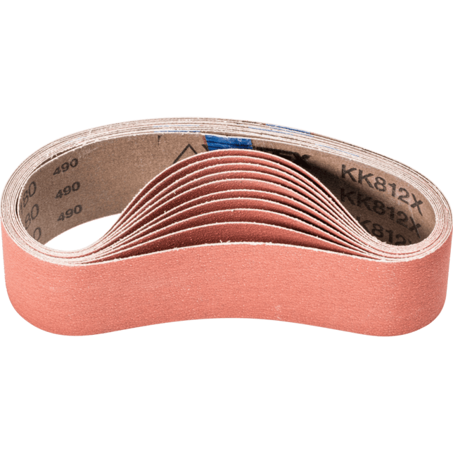 Na všeobecnú brúsenie od jemného po veľmi jemné brúsenie na materiáloch, ktoré zle vedú teplo, napr. nerezová oceľ (INOX). Aktívne brúsiace prísady v povlaku podstatne zlepšujú rýchlosť odstraňovania materiálu, zabraňujú upchávaniu a vedú k chladnejšiemu brúseniu. Krátke pásy sú kompatibilné s bežne dostupnými pásovými brúskami. V norme ISO 2976 sú uvedené pod označením "brúsiace pásy".