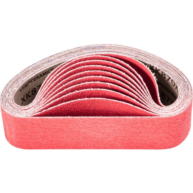 Na agresívne brúsenie s maximálnou rýchlosťou odstraňovania materiálu na tvrdých materiáloch, ktoré zle vedú teplo. Konzistentne vysoký výkon vďaka samoostriacim keramickým oxidu zrnám. Aktívne brúsiace prísady v povlaku podstatne zlepšujú rýchlosť odstraňovania materiálu, zabraňujú upchávaniu a vedú k chladnejšiemu brúseniu. Krátke pásy sú kompatibilné s bežne dostupnými pásovými brúskami. V norme ISO 2976 sú uvedené pod označením "brúsiace pásy".