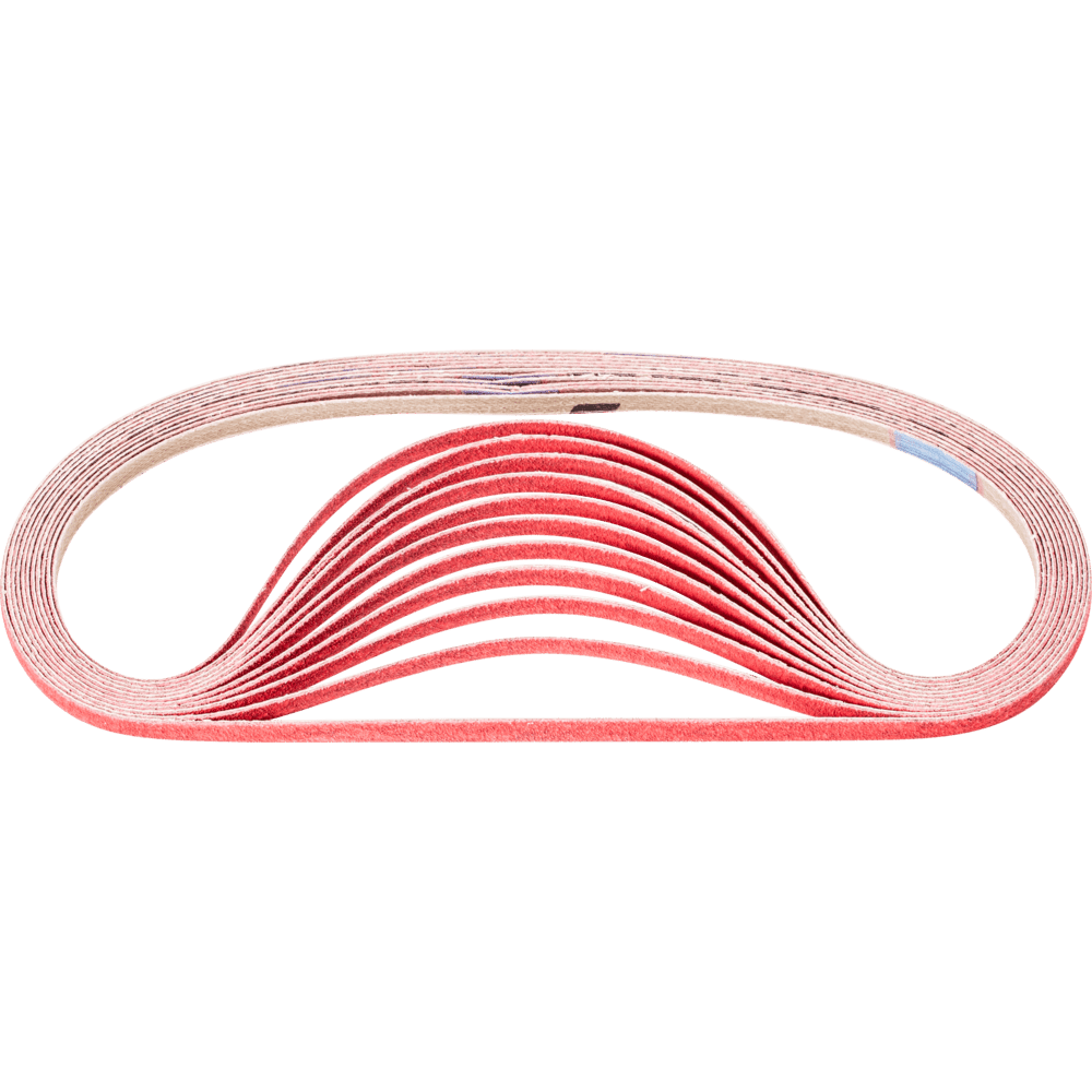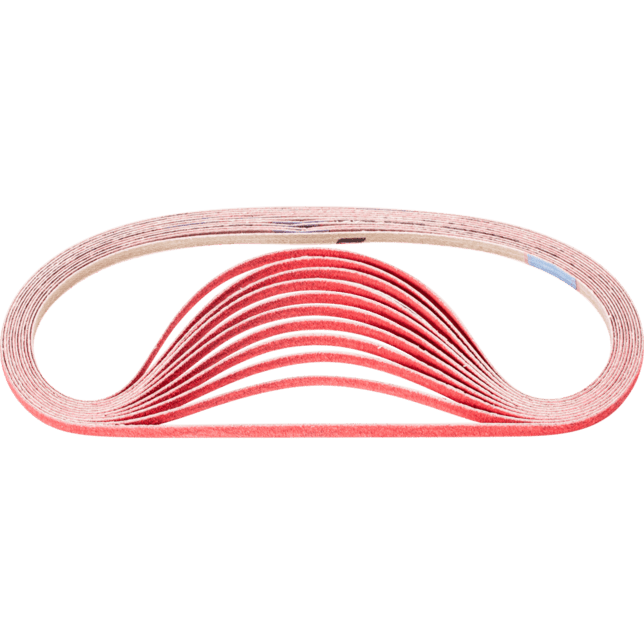 Na agresívne brúsenie s maximálnou rýchlosťou odstraňovania materiálu na tvrdých materiáloch, ktoré zle vedú teplo. Konzistentne vysoký výkon vďaka samoostriacim keramickým oxidačným zrnám. Aktívne brúsiace prísady v povlaku podstatne zlepšujú rýchlosť odstraňovania materiálu, zabraňujú upchávaniu a zabezpečujú chladnejšie brúsenie. Krátke pásy sú kompatibilné s bežne dostupnými pásovými brúskami. V norme ISO 2976 sú uvedené pod označením "brúsiace pásy".