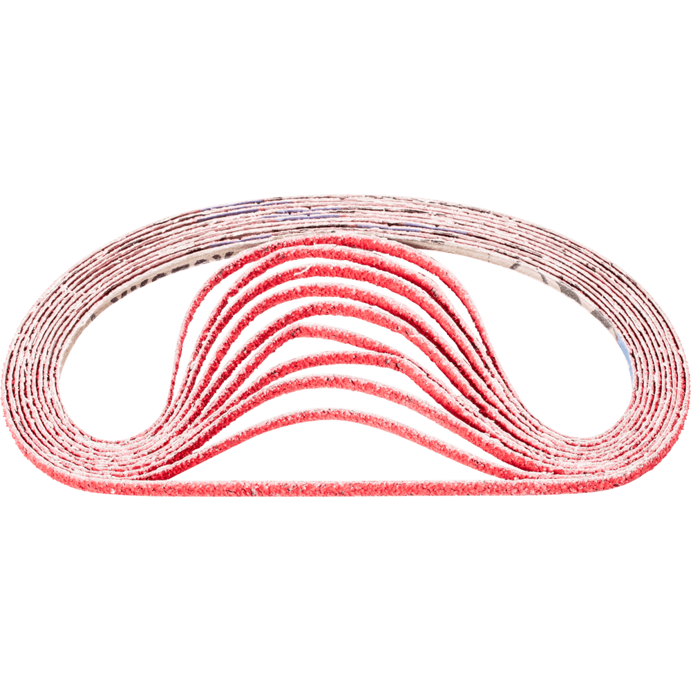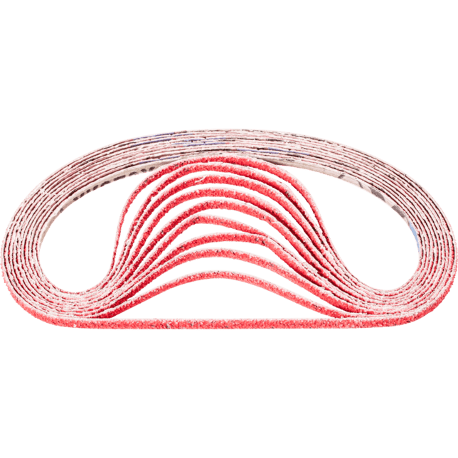 Na agresívne brúsenie s maximálnou rýchlosťou odstraňovania materiálu na tvrdých materiáloch, ktoré zle vedú teplo. Konzistentne vysoký výkon vďaka samoostriacim keramickým oxidačným zrnám. Aktívne brúsiace prísady v povlaku podstatne zlepšujú rýchlosť odstraňovania materiálu, zabraňujú upchávaniu a zabezpečujú chladnejšie brúsenie. Krátke pásy sú kompatibilné s bežne dostupnými pásovými brúskami. V norme ISO 2976 sú uvedené pod označením "brúsiace pásy".