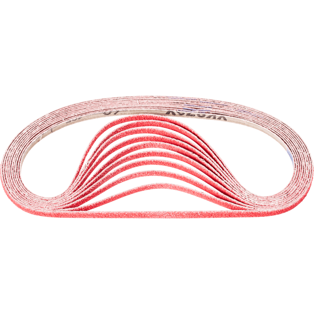 Na agresívne brúsenie s maximálnou rýchlosťou odstraňovania materiálu na tvrdých materiáloch, ktoré zle vedú teplo. Konzistentne vysoký výkon vďaka samoostriacim keramickým oxidačným zrnám. Aktívne brúsiace prísady v povlaku podstatne zlepšujú rýchlosť odstraňovania materiálu, zabraňujú upchávaniu a zabezpečujú chladnejšie brúsenie. Krátke pásy sú kompatibilné s bežne dostupnými pásovými brúskami. V norme ISO 2976 sú uvedené pod označením "brúsiace pásy".