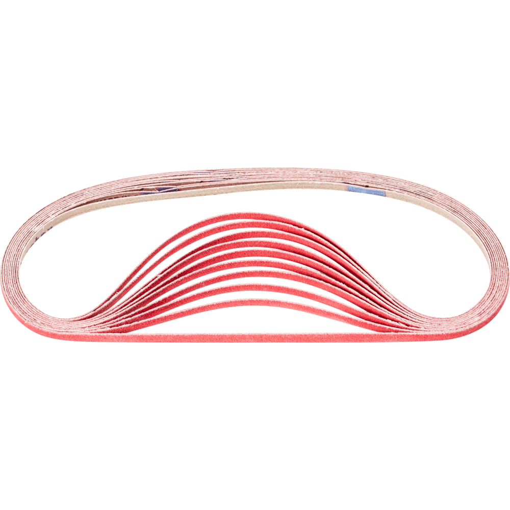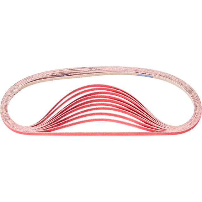 Na agresívne brúsenie s maximálnou rýchlosťou odstraňovania materiálu na tvrdých materiáloch, ktoré zle vedú teplo. Konzistentne vysoký výkon vďaka samoostriacim keramickým oxidačným zrnám. Aktívne brúsiace prísady v povlaku podstatne zlepšujú rýchlosť odstraňovania materiálu, zabraňujú upchávaniu a zabezpečujú chladnejšie brúsenie. Krátke pásy sú kompatibilné s bežne dostupnými pásovými brúskami. V ISO 2976 sú uvedené pod označením "brúsiace pásy".