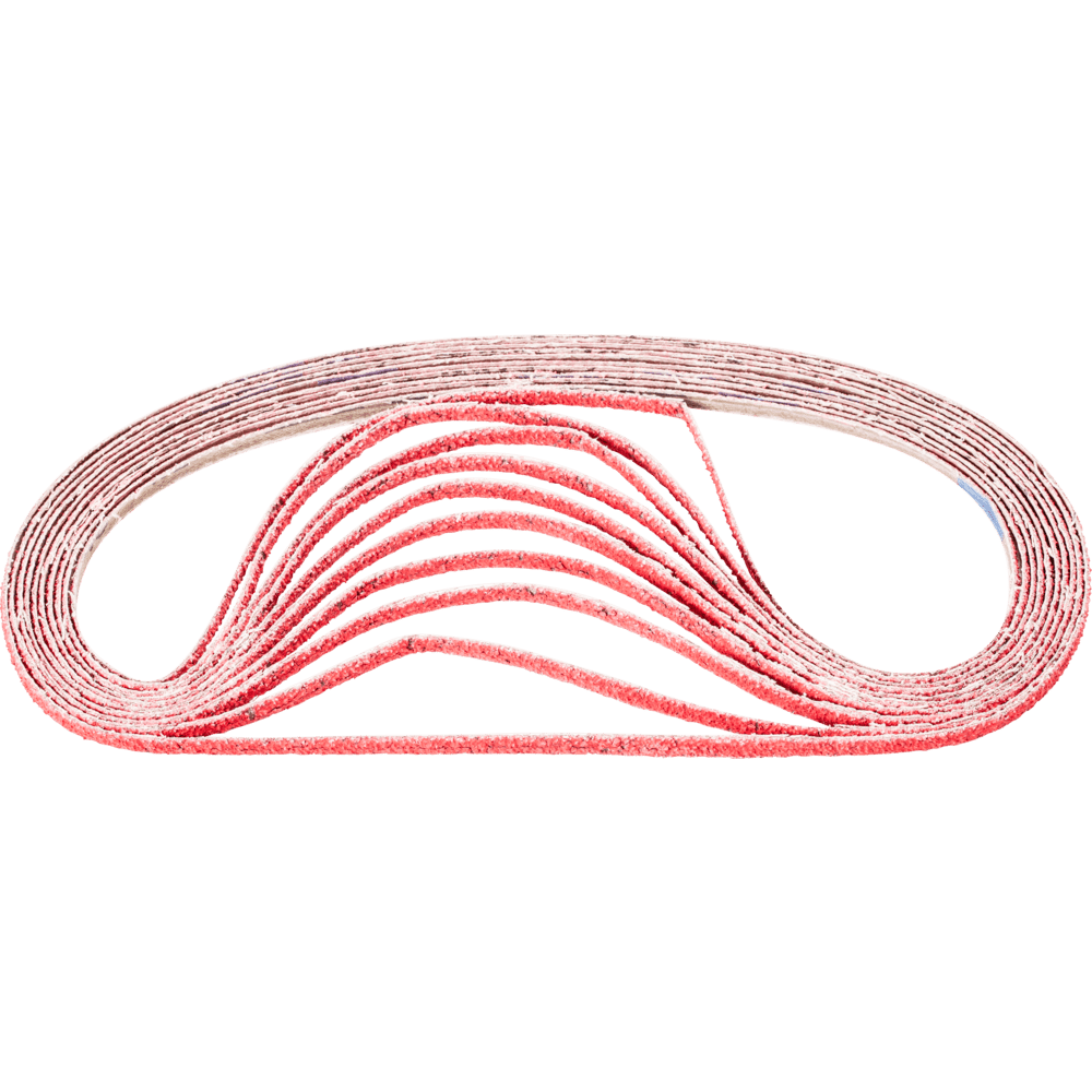 Na agresívne brúsenie s maximálnou rýchlosťou odstraňovania materiálu na tvrdých materiáloch, ktoré zle vedú teplo. Konzistentne vysoký výkon vďaka samoostriacim keramickým oxidačným zrnám. Aktívne brúsiace prísady v povlaku podstatne zlepšujú rýchlosť odstraňovania materiálu, zabraňujú upchávaniu a vedú k chladnejšiemu brúseniu. Krátke pásy sú kompatibilné s bežne dostupnými pásovými brúskami. V norme ISO 2976 sú uvedené pod označením "brúsiace pásy".
