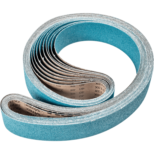 Na hrubé brúsenie s vysokou rýchlosťou odstraňovania materiálu a dlhou životnosťou náradia. Dlhé pásy sú kompatibilné s bežne dostupnými pásovými brúskami. V norme ISO 2976 sú uvedené pod označením "brúsiace pásy".