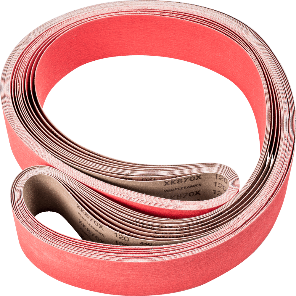 Na agresívne brúsenie s maximálnou rýchlosťou odstraňovania materiálu na tvrdých materiáloch, ktoré zle vedú teplo. Konzistentne vysoký výkon vďaka samoostriacim keramickým oxidačným zrnám. Aktívne brúsiace prísady v povlaku podstatne zlepšujú rýchlosť odstraňovania materiálu, zabraňujú upchávaniu a vedú k chladnejšiemu brúseniu. Dlhé pásy sú kompatibilné s bežne dostupnými pásovými brúskami. V norme ISO 2976 sú uvedené pod označením "brúsiace pásy".