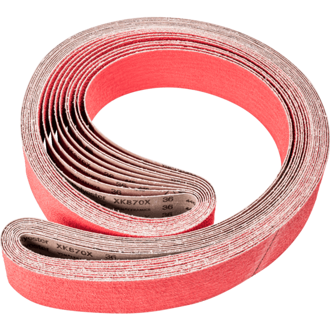 Na agresívne brúsenie s maximálnou rýchlosťou odstraňovania materiálu na tvrdých materiáloch, ktoré zle vedú teplo. Konzistentne vysoký výkon vďaka samoostriacim keramickým oxidu zrnám. Aktívne brúsiace prísady v povlaku podstatne zlepšujú rýchlosť odstraňovania materiálu, zabraňujú upchávaniu a vedú k chladnejšiemu brúseniu. Dlhé pásy sú kompatibilné s bežne dostupnými pásovými brúskami. V norme ISO 2976 sú uvedené pod označením "brúsiace pásy".