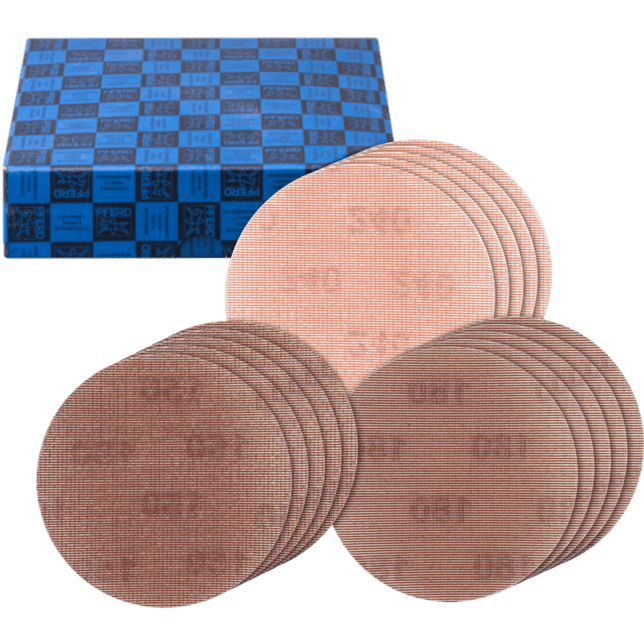 PFERD TOOLS ponúka široký výber abrazívnych nástrojov s povrchovou úpravou na prácu s rôznymi geometriami a materiálmi obrobkov. Tieto nástroje sa skladajú z podkladu, spojiva podkladu a spojiva na povrchovú úpravu, na ktoré sa prichytáva abrazívne zrnko. V závislosti od veľkosti zrna môžu abrazívne nástroje dosiahnuť vysokú rýchlosť odstraňovania materiálu alebo veľmi jemný povrchový finiš. Dostupné podkladové materiály sa líšia vlastnosťami, ako sú pevnosť v ťahu, flexibilita a odolnosť proti opotrebeniu. S vhodným podkladom je brúsiaci nástroj prispôsobený požiadavkám zamýšľanej aplikácie: papier sa používa v drevárskom priemysle a v obchode, napr. medzi stolármi, maliarmi a dekoratérmi, tkanina sa prevažne používa na prácu s kovmi a vulkanizovaná vlna je veľmi odolná voči opotrebeniu a používa sa v rôznych hrúbkach prevažne na výrobu vláknitých diskov. Sada obsahuje abrazívne disky s háčikom a slučkou vhodné na výber rôznych aplikácií, navrhnuté na prácu bez prachu počas jemného brúsenia na stredne veľkých a veľkých plochách. NET abrazívne disky s háčikom a slučkou pozostávajú z mriežkového materiálu, na ktorý je abrazívne zrnko prilepené pomocou silnej viazacej techniky, čo z neho robí veľmi robustný produkt.