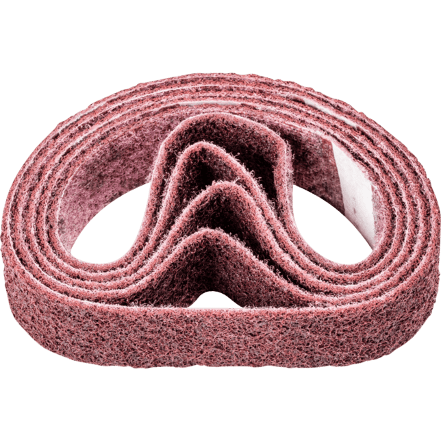 Vhodné na všeobecnú prácu na povrchoch, ako sú kovové trubkové konštrukcie, napr. odstraňovanie hrubých brúsiacich stôp, odstraňovanie oxidácie a ľahké odhrotovanie. Dosiahnite matné a saténové povrchy. Krátke pásy sú kompatibilné s bežne dostupnými pásovými brúskami. V norme ISO 2976 sú uvedené pod označením "brúsiace pásy". POLIVLIES zrnitosti 180 M = stredné (červenohnedé)