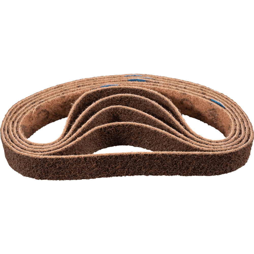 Vhodné na všeobecnú prácu na povrchoch, ako sú kovové trubkové konštrukcie, napr. odstraňovanie hrubých brúsiacich stôp, odstraňovanie oxidácie a ľahké odhrotovanie. Dosiahnite matné a saténové povrchy. Krátke pásy sú kompatibilné s bežne dostupnými pásovými brúskami. V norme ISO 2976 sú uvedené pod označením "brúsiace pásy". POLIVLIES zrnitosti 100 G = hrubé (žltohnedé)