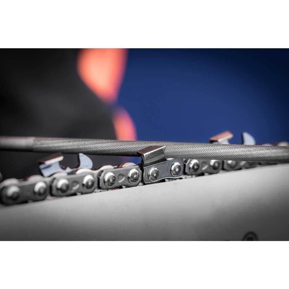 Pilníky na reťazové píly od PFERD TOOLS sa používajú po celom svete na ostrenie reťazí píly. Môžu sa používať samostatne s rukoväťou alebo v kombinácii s pilníkmi na hĺbku s populárnymi ostričmi reťazových píl CHAIN SHARP. Okrúhle pilníky na ručné ostrenie reťazí píly s presným špirálovým rezom pre vynikajúcu ostrosť a mimoriadne dlhú životnosť nástroja. Pre rýchle, bezryhové ostrenie zubov píly. V porovnaní s ostrením strojom tieto pilníky odstraňujú materiál šetrne bez tepelných zaťažení spôsobených trením na kov. Inovatívny špirálový rez pre používateľov, ktorí preferujú jemnejšiu akciu pri brúsení.