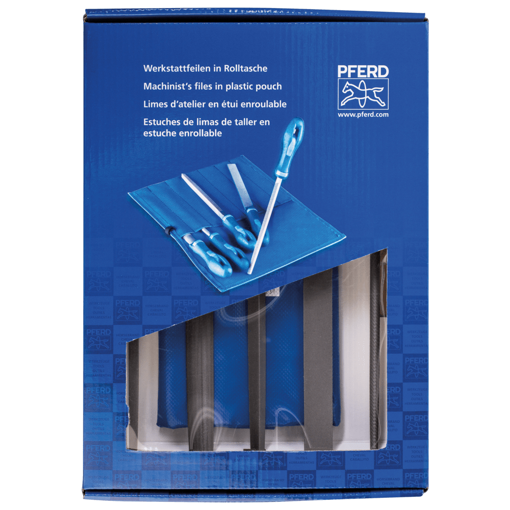 Kvalitné pilníky pre priemysel a obchod v ochrannom a klimaticky odolnom PVC obale na uskladnenie v náradí alebo na pracovnom stole. Každý pilník je vybavený ergonomickou rukoväťou. Priečne rezanie pre všeobecnú prácu s pilníkmi. Plastový obal je zabalený v atraktívnom balení s priehľadným oknom.
