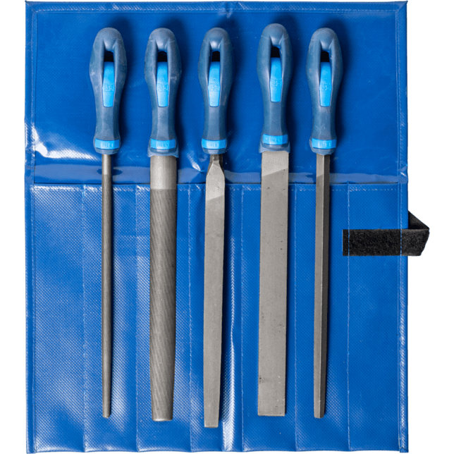 Kvalitné pilníky pre priemysel a obchod v ochrannom a klimaticky odolnom PVC obale na uskladnenie v náradí alebo na pracovnom stole. Každý pilník je vybavený ergonomickou rukoväťou. Priečne rezanie pre presné spracovanie a dokončovanie.